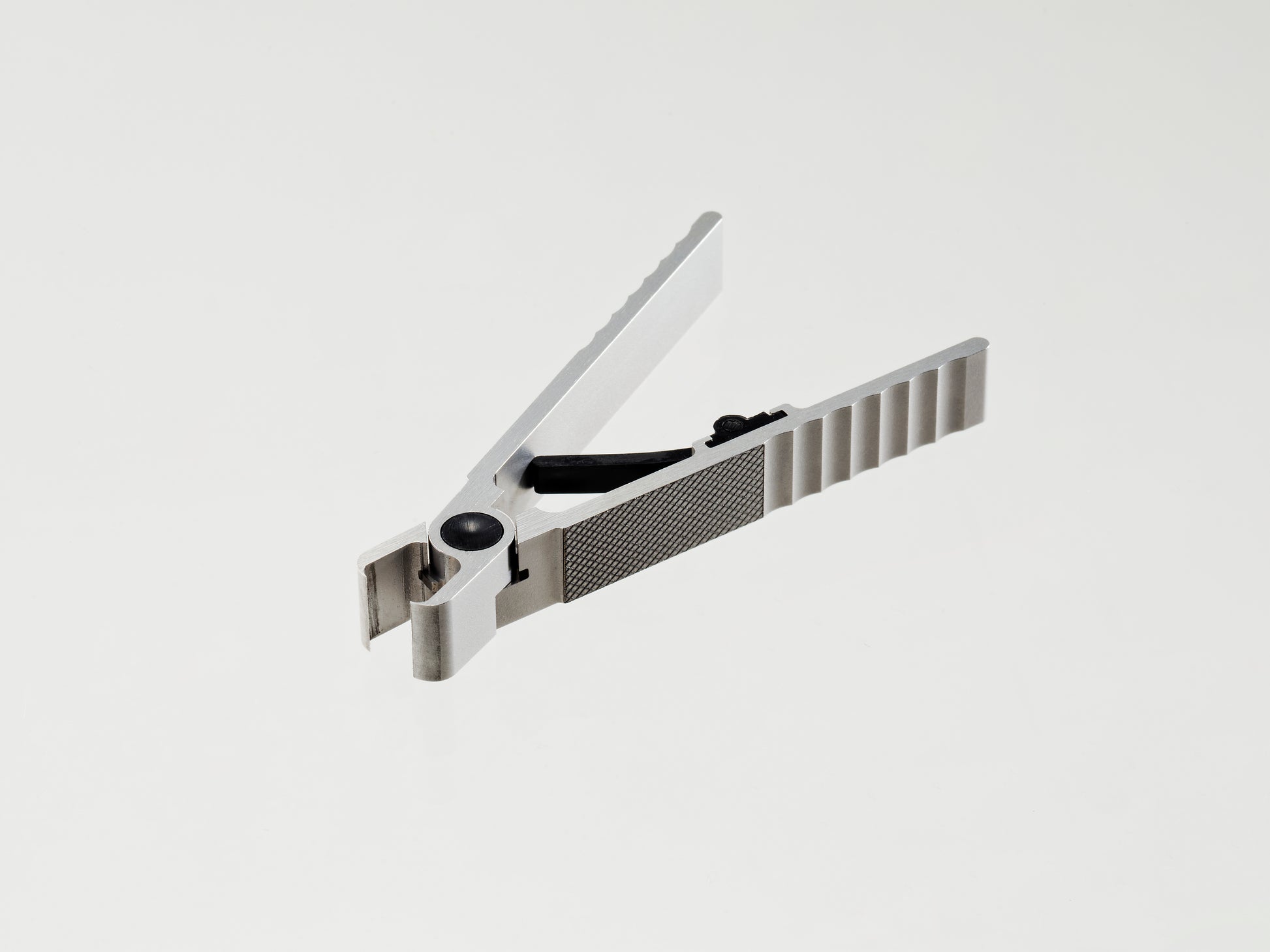 通常、カシメには金属鋲を必要としますが、ミニニッパー爪切りのインロー機能により、刃先がズレることなく、軽くて丈夫なナイロン鋲使用が可能となりました。